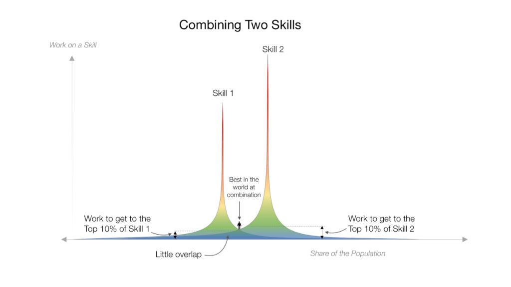 Of course, there are different types of skills. You’ll have trouble combining some skills, but others are universal. Public speaking, writing, marketing, programming, charisma; these can stack with almost anything. Scott Adams says this about public speaking:
